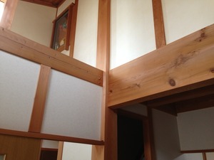 この写真はリビングの大黒柱と大きな胴差しの部分の写真です。