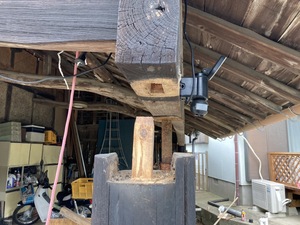 - 07月18日 【宗像市 Y様邸] 納屋の軒を支える柱が腐食したので新しく柱を取替えました。【宗像市 白木建設】