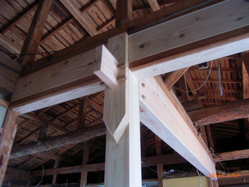 中古住宅物件を私の知人であるお施主様が探していたところ、一緒に見てほしいとの依頼があり何件か見ている間に、理想の物件の話や、土地の事や、家の構造の事などをアドバイスしているうち、理想の物件が見つかり屋根裏まで見たところリビングの上に立派な太鼓梁が組んでありました。お施主様の要望でリビングに曲がった梁が見えるようにしたいという要望が叶う家でした。おまけに全ての間仕切壁に天井上まで土壁が施してありました。私の勧めもありこの物件を購入して白木建設にリフォーム工事を依頼して頂きました。
