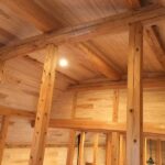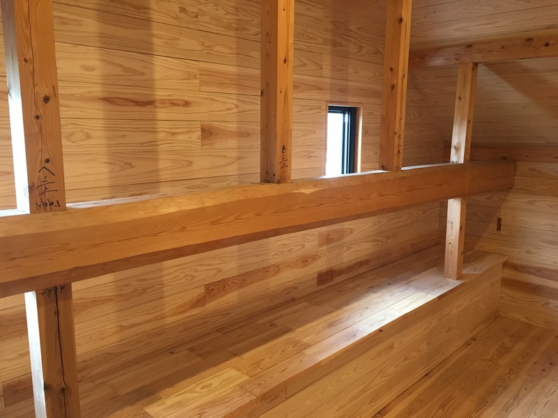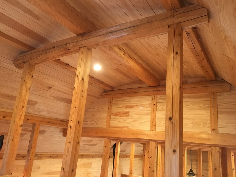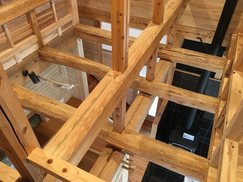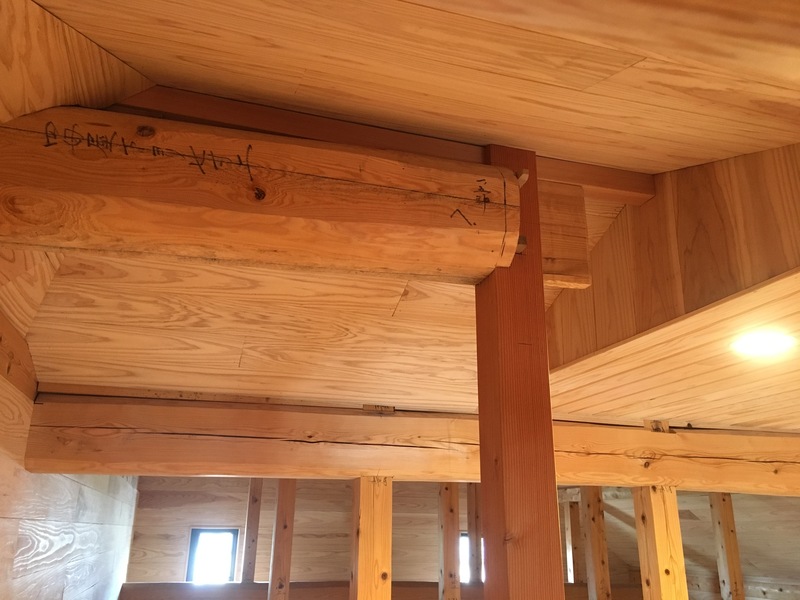 16ロフトの天井です。三引きの上に高梁が組まれています。通常は屋根裏に隠れていますが、あえてロフトに現しにしました。