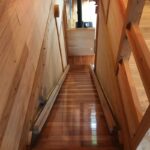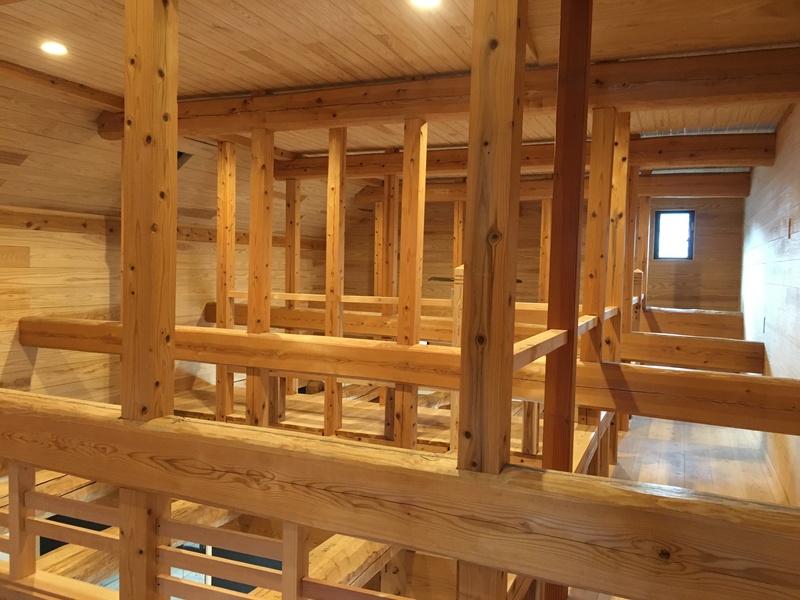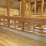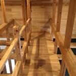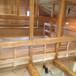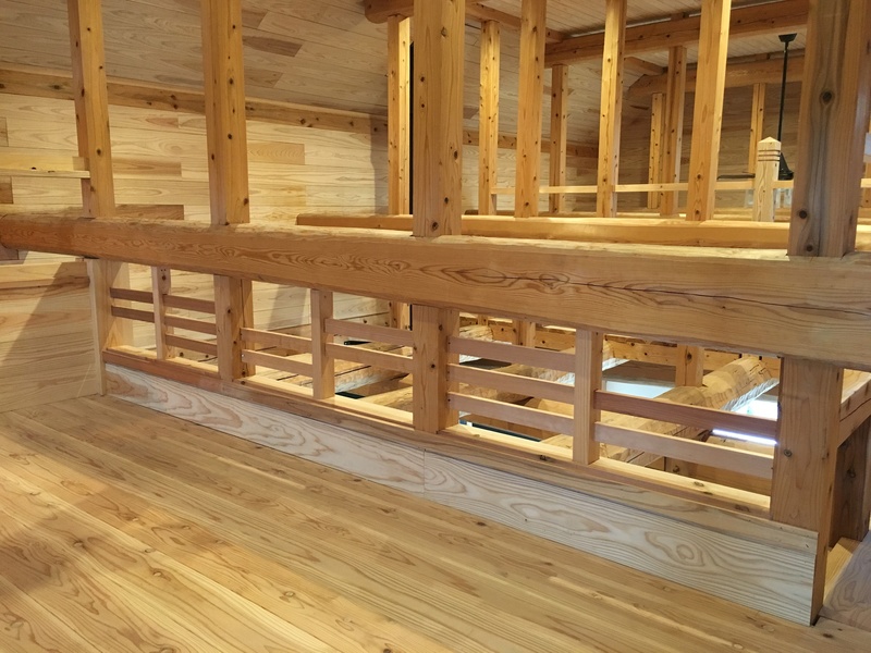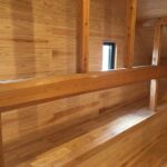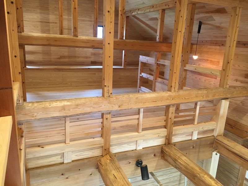 12 吹き抜け部分に掃除や薪ストーブの煙突の点検が出来る様に2重梁と束柱を手摺りがわりにした回廊です。