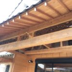 ③玄関ポーチの丸桁は爺ちゃんの家の庭に生えていた槇の木を使わせてもらいました。