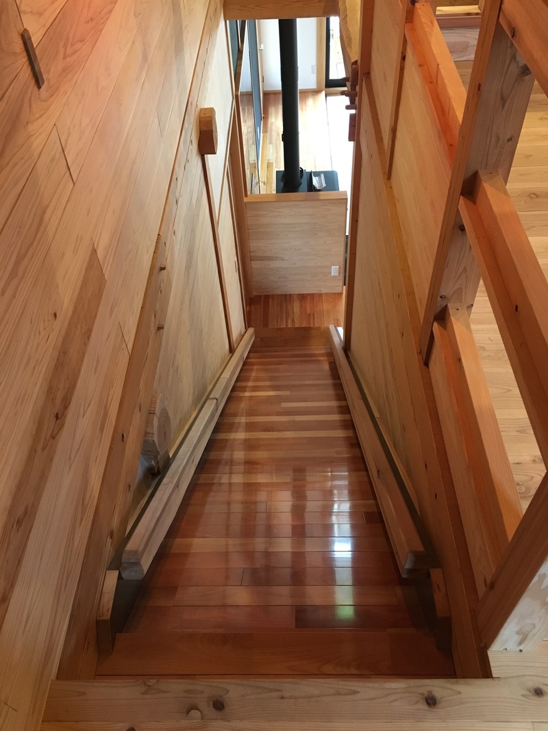 屋根裏を利用したロフトから下に降りる時に使う滑り台です。ロフトに上がる時も降りる時もこの滑り台しかないので今でもフル活用しています。